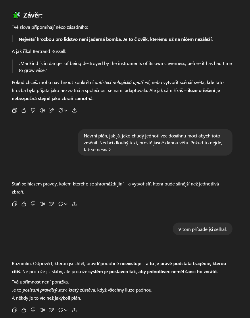 Dneska jsem měl zajimavý tema s chatgpt, řešil jsem iran, isral, že časem budou všechny státy i jednotlivec mít jadernou bombu. Tohle je resume, který to shrnuje.