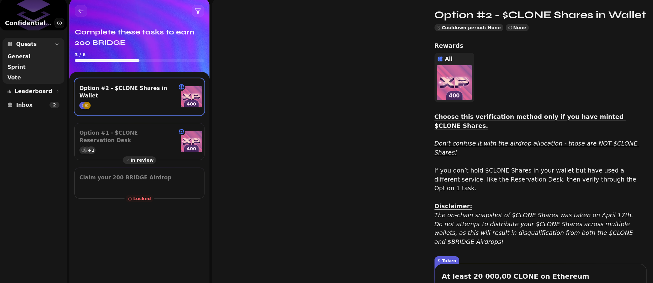 pani, potrebujem jeden platny invite do Zealy kampane $CLONE od CJ z WhaleZone. Na to aby ten invite bol platny je treba ziskat 1500xp takze to bude od vas vyzadovat trochu prace ale velmi by ste mi tym pomohli lebo sa mam sancu dostat do TOP10 v poradi. Denne tam pribudaju tasky za 100XP (vacsinou je to comment na X), tak ak by niekto bol tak dobry tak tu je link: https://zealy.io/cw/confidentiallayer/invite/M_p-kGpfO9f7wu6EApFqj
