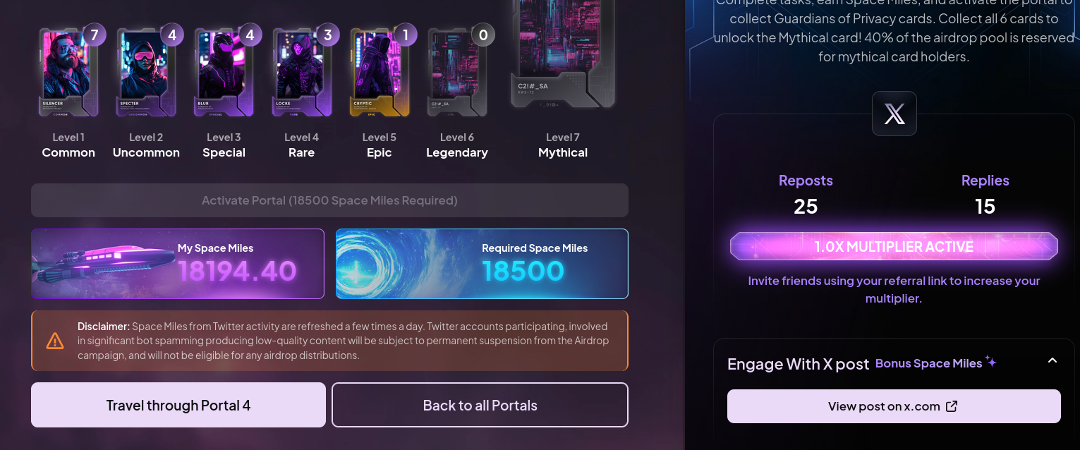https://cloneairdrop.com/?invite=2LEYY je tady konečně hlavní kampan CLONE. 40 procent jde na airdrop. je to nový budoucí private bridging platforma. stojí za tím tým kolem CJ z whalezone. doporučoval bych se zapojit. může z toho padnout slušný airdropek. ten jejich portal na tasky je přehledný a intuitivní....