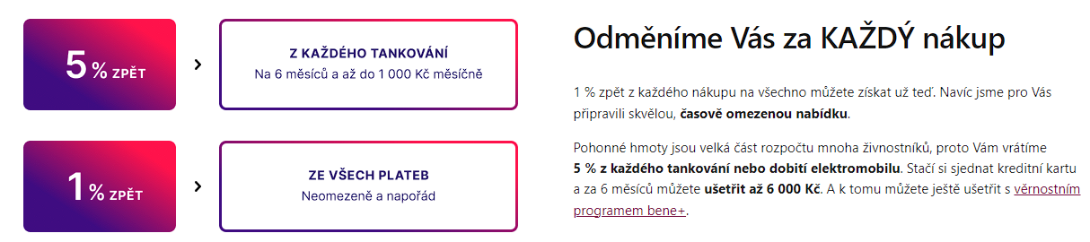Kreditka má teď stále taky 1% z plateb a navíc 4% (celkem tedy 5%) odměnu z plateb na čerpacích stanicích na 6 měsíců