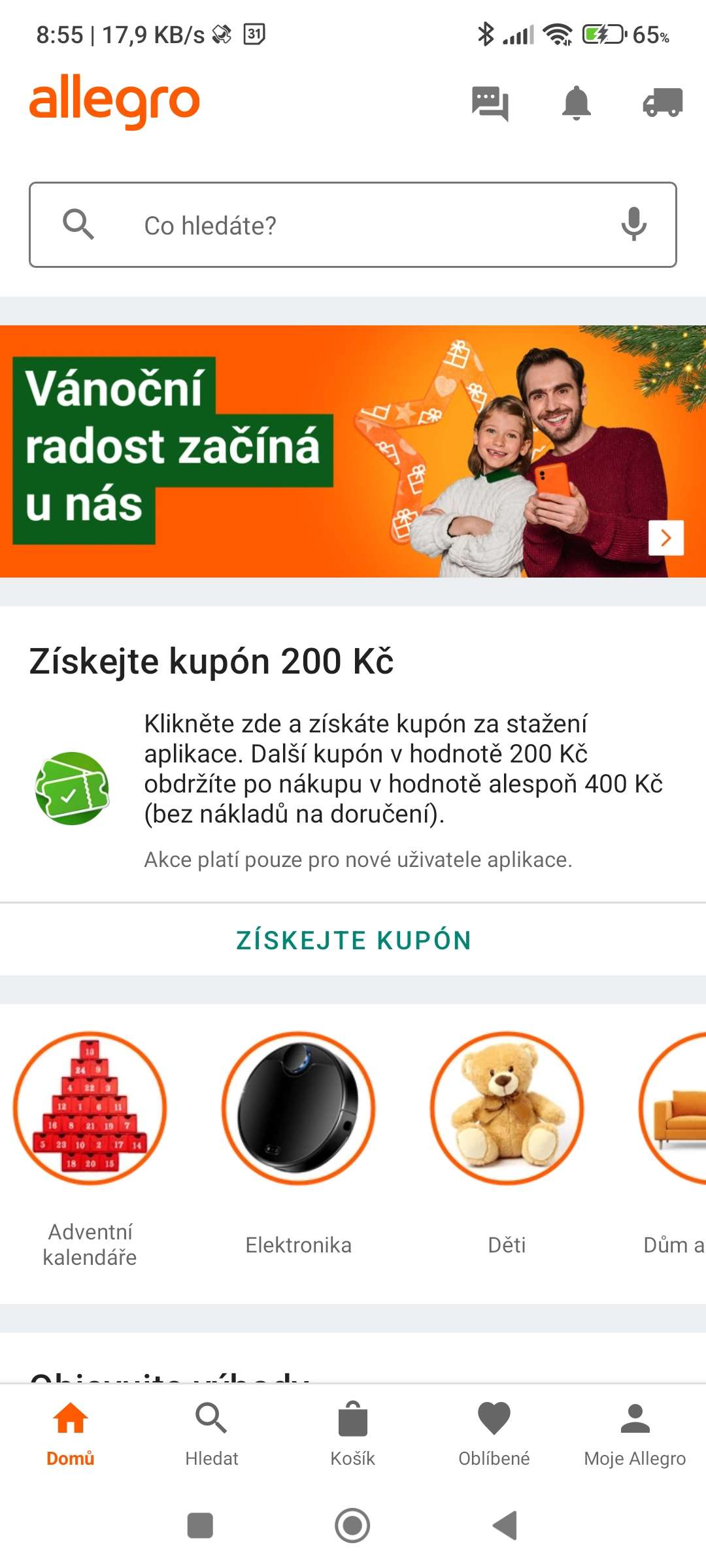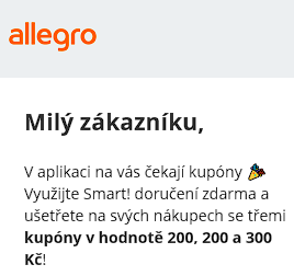 allegro další kupon v aplikaci na 200 kč, když už máte nějakou historickou objednávku