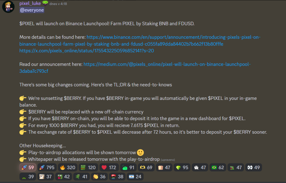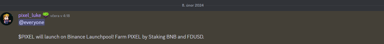 Nevím jestli někdo sledujete pixel na jejich discordu, případně ve hře ... Ale jestli jste teď postřehli co všechno musíte udělat ve hře pro získání 1 Pixelu, tak jsem celkem rád za 10 zastakovaných BNB na Binanci 😂