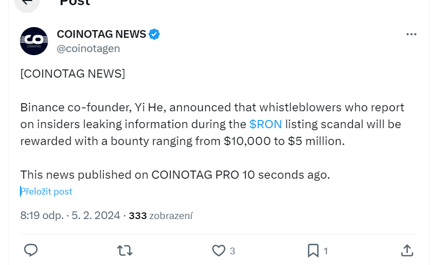 Mně jen vrtá hlavou, proč launch na Binance a ne (aspoň zároveň) na Roninu.