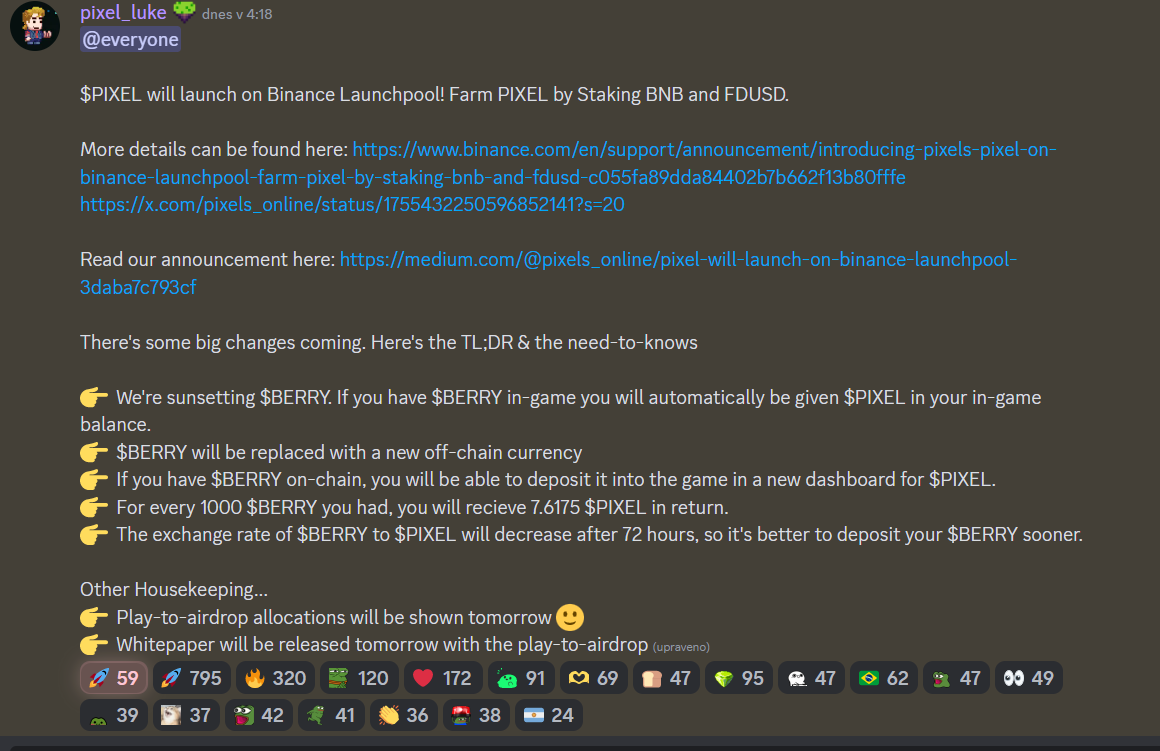 ale cely Lunchpool na Binance je o STAKINGu BNB alebo FDUSD, radej nakupit PIXEL priamo cez BERRY v PIXEL GAME