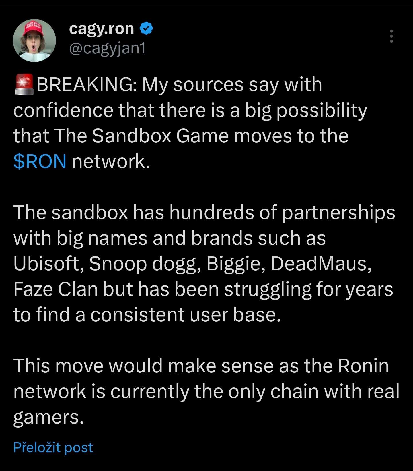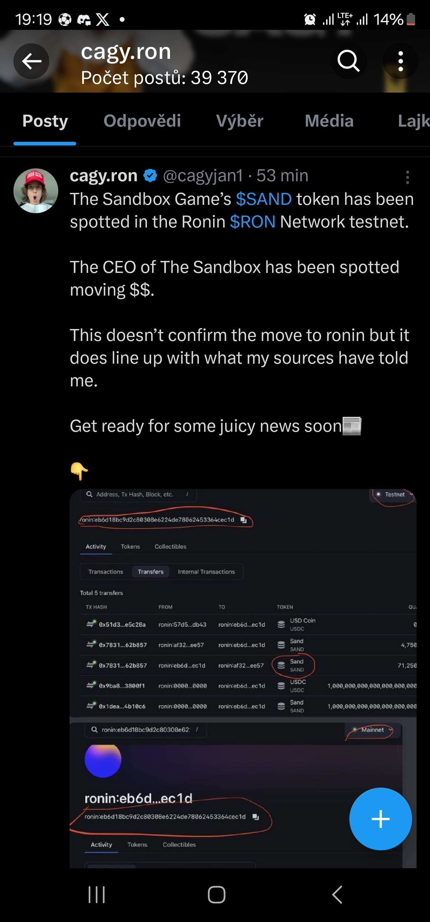 Na Ronin testnetu se objevil SAND token.https://twitter.com/cagyjan1/status/1732451294877487588?s=19