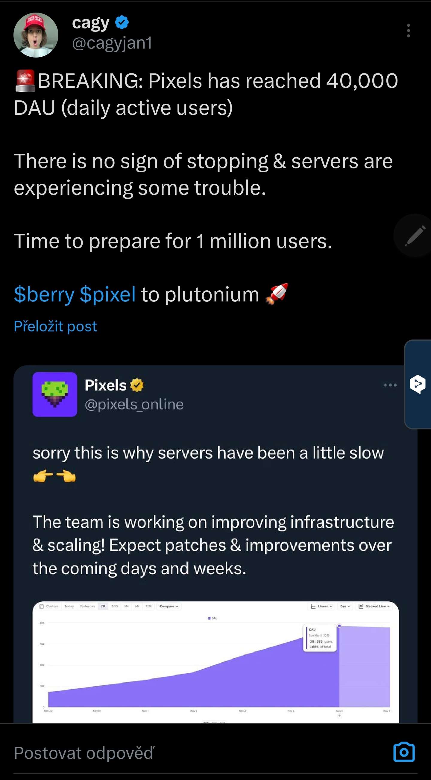 Pixels má 40000 daily active users. Jaká hra to má?