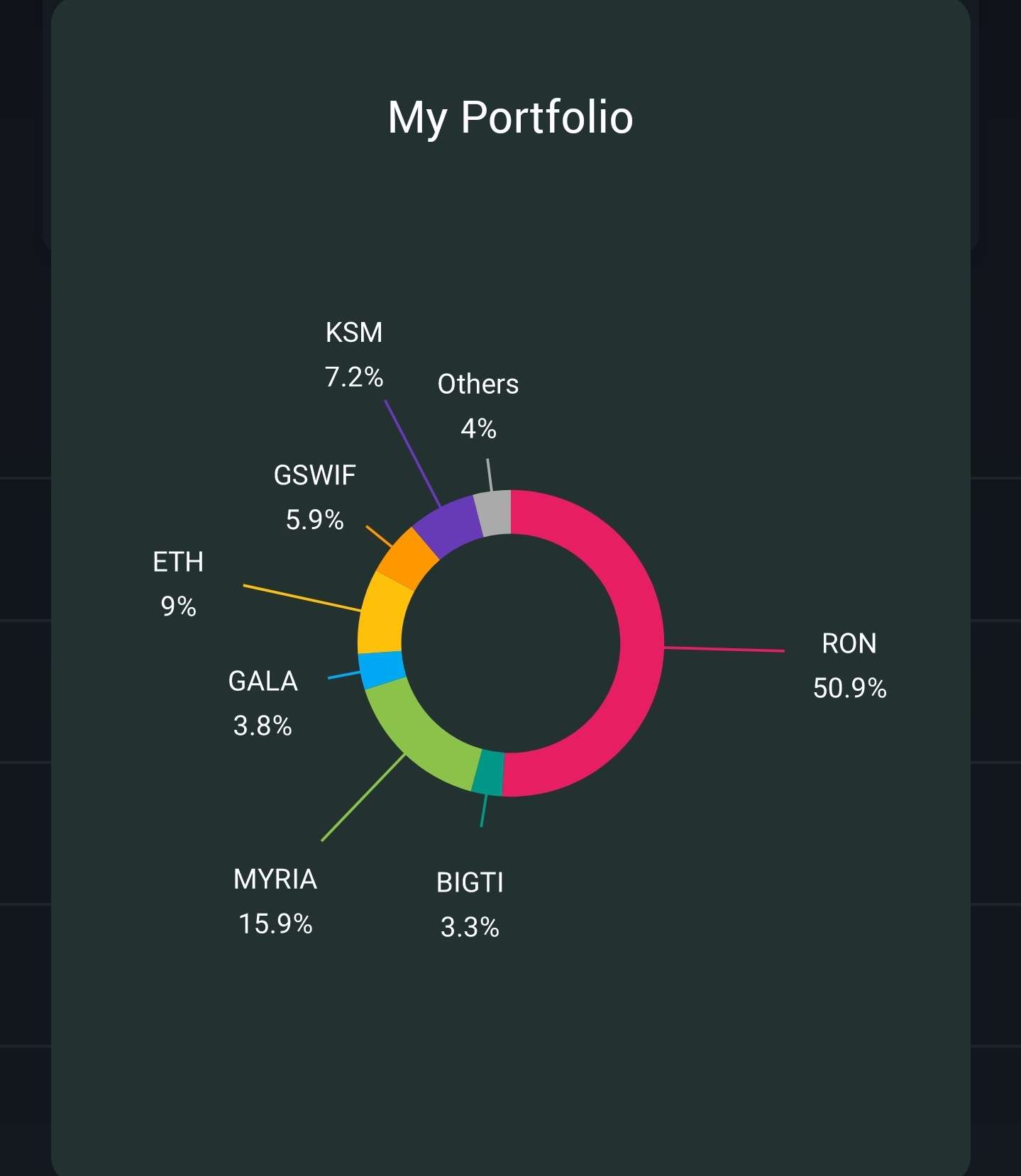 Tu KSM jsem jen linej prodat. U Mirie vlastnim node, dostavam kazdy den odmeny. V tech others mam $BERRY a trochu $IMX. $GSWIF je herni ecosystem od kluku z Polska, malej marcetcap. $GALA by snad mela mit zachvily hotovy chain a zde vlastnim filmovy a hudebni node. Ze kterych take budu dostavat nejake odmeny az se to spusti. A $ RON je moje srdecni zaležitost a tomu fakt věřím, stejně jako jsem jim věřil minulý Bull run. Zatim to dělaji dobře, jejich komunita nema konkurenci.
