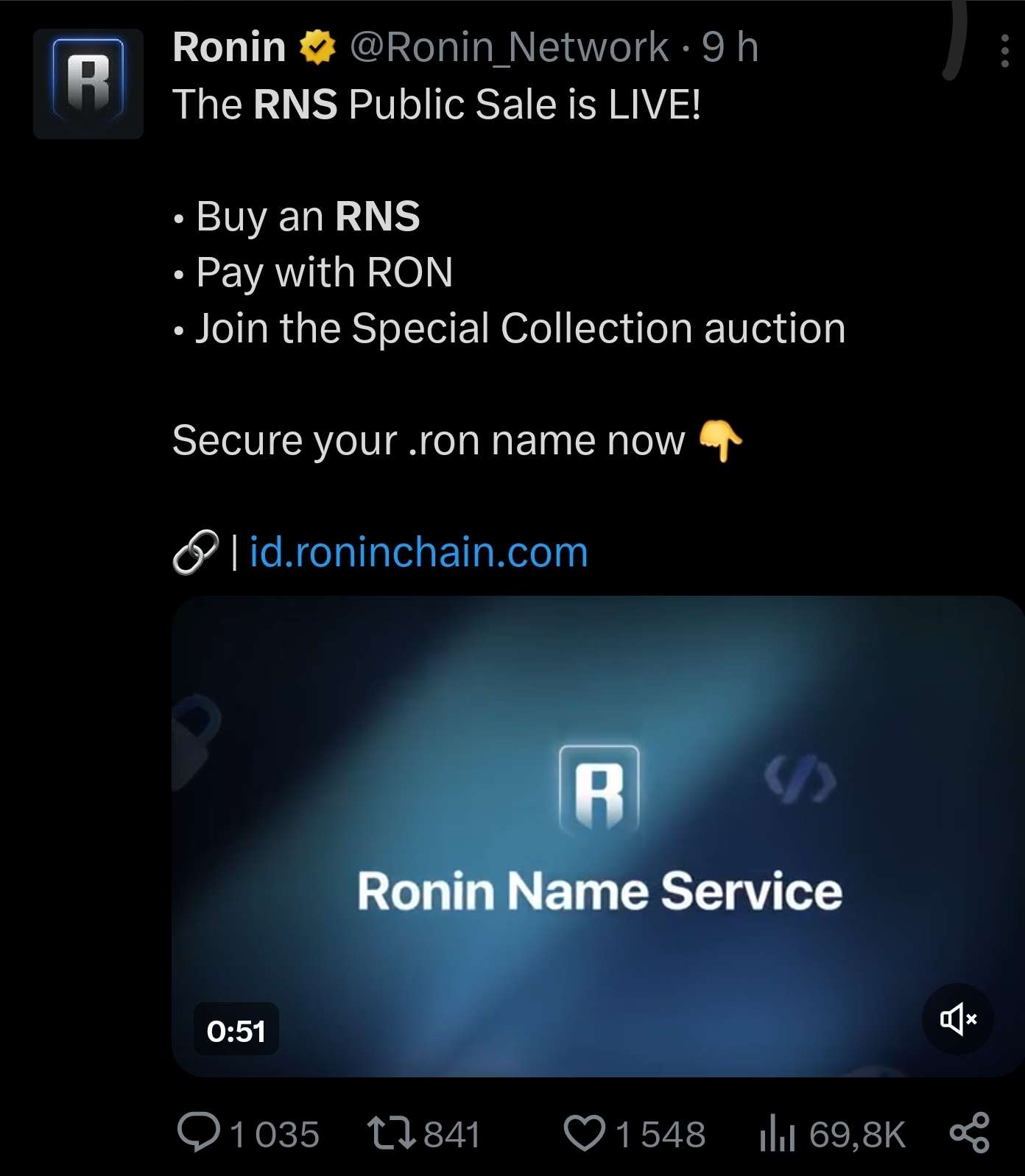 https://twitter.com/Ronin_Network/status/1701586359062872525?s=19