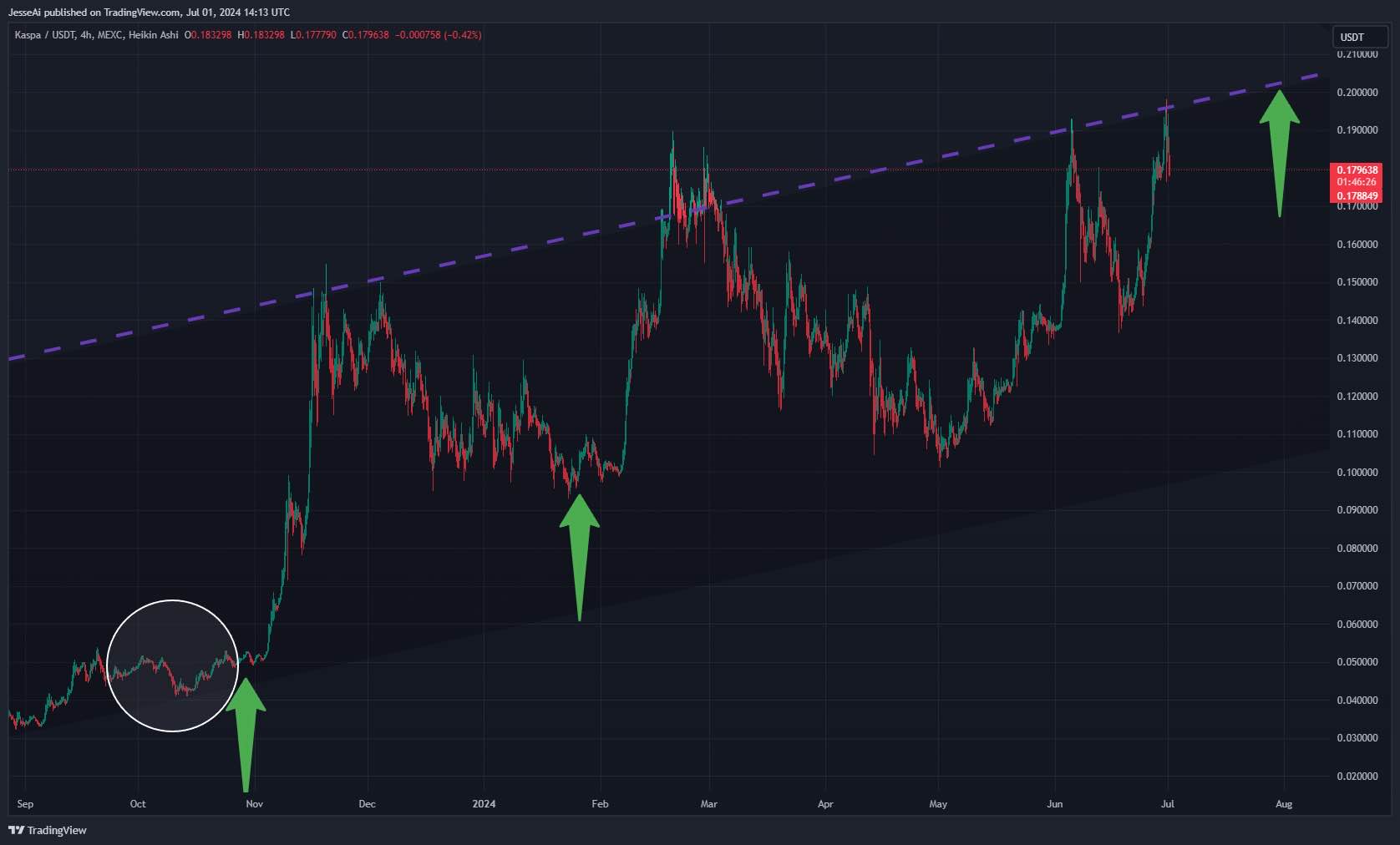 @Invi Tenhle grafik mam na svém očním pozadí. I když mé očekávání jsou střídmější, a to 0,4 $ za 1 Kaspa na přelomu 2023/2024. Takže necelých 200% oproti dnešku.