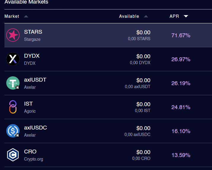 Jsem na ux umme na cosmu jsou tahm hezke procenta. Jinakk mne zajimaji lending protokoly na ruznych chainech spis jde o to aby byly nejak prověřené ze skutečně fungují.
