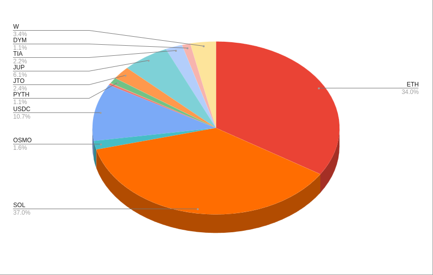U me uz akorat Solana (SOL, Jup, JTO, Pyth …)/Ethereum (hlavne restaking) / stable (USDC) / a malinko zbytek Osmosis, Celestia, Dymension. Jinak taky z Cosmosu komplet out.