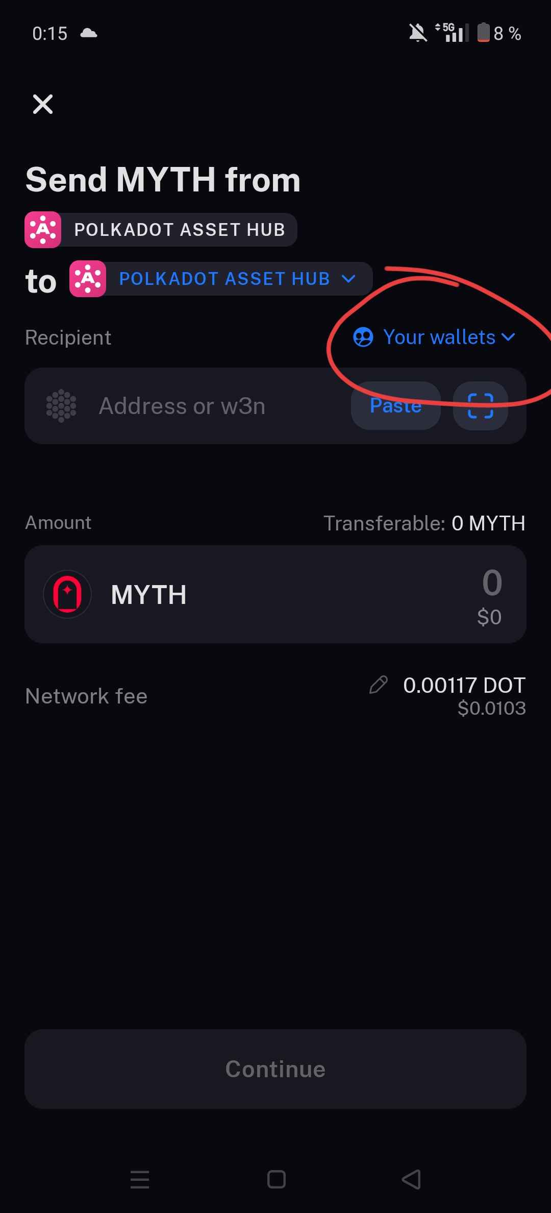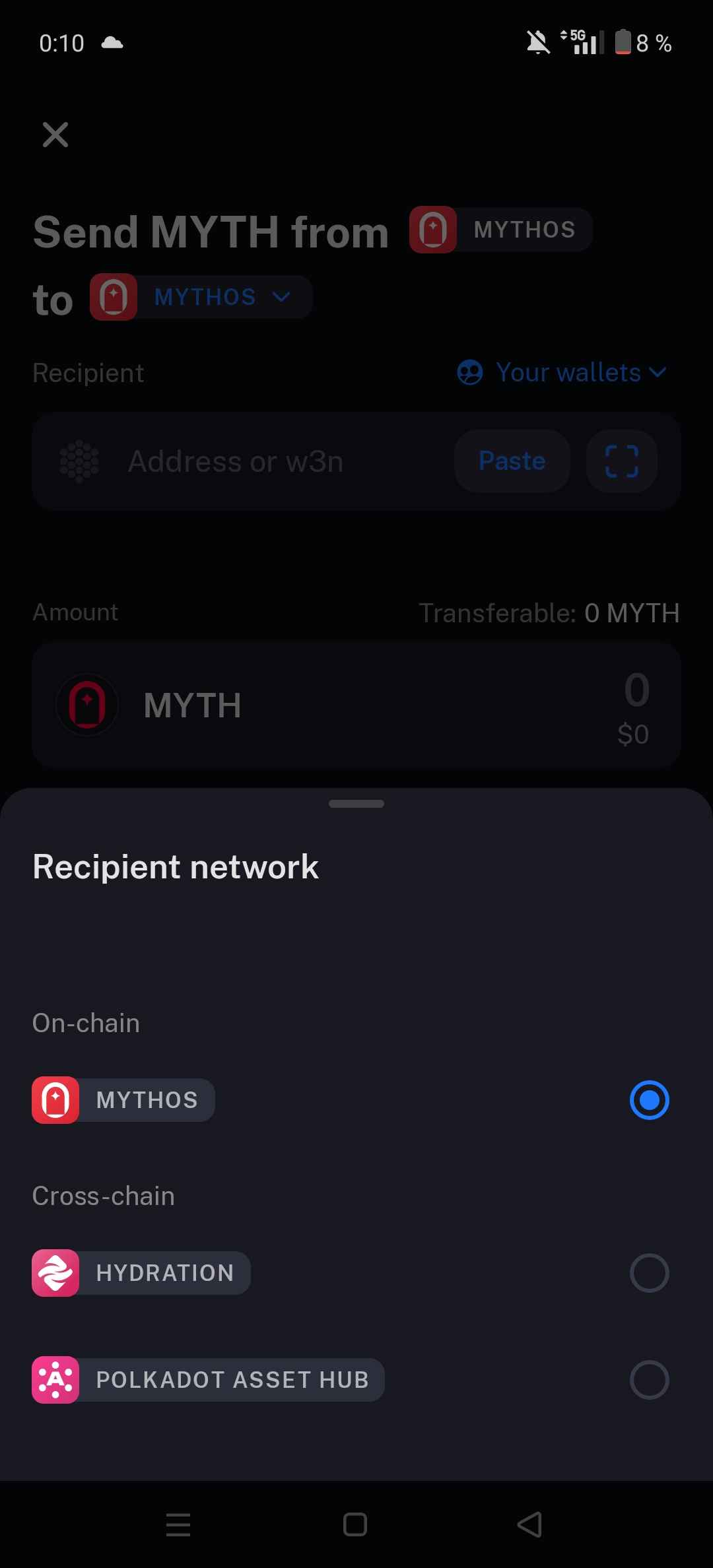 ee lebo to čo posielaš je akoby MYTH sieť a ja to mam na Polkadot Asset Hub.. to je ikonka ako ma USDT dole na tvojom obrázku
