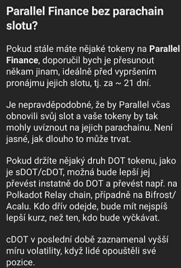 https://app.parallel.fi/swap tuto to swapnes ale teraz je to nevyhodne, praveze som cakal teraz na nejaky koniec oktobra, sa tie 6/13 maly odomknut a mali by byt 1:1 s dotom ale pri tejto info ze parallel je v srackach, neviem no 😄