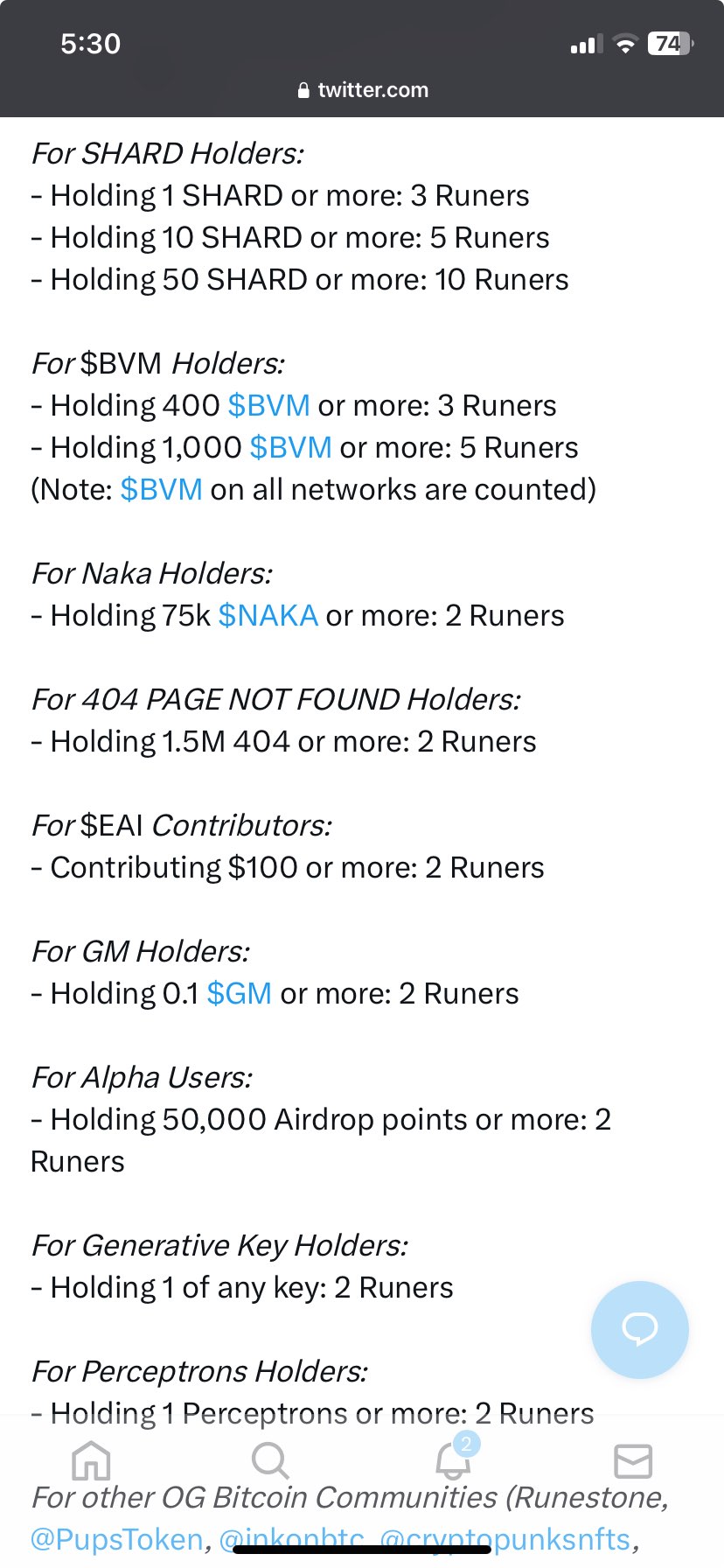 @mrak bvm runes, měl jsem tam 2x free mint https://x.com/BVMnetwork/status/1780129286789439605
