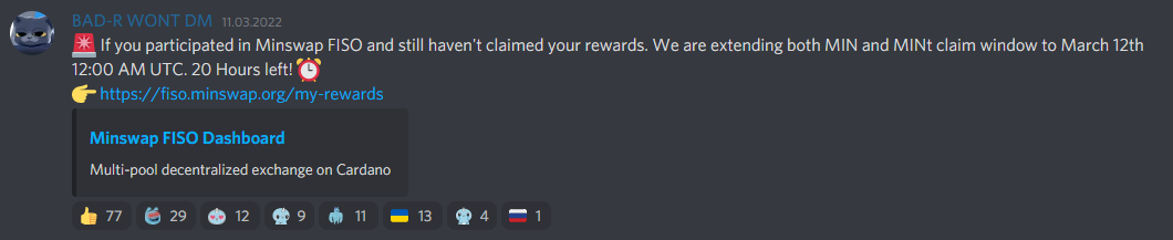 Reklamy a dôvody prečo to vôbec používať? Veď je to burza, ak potrebuješ urobiť swap tak ideš tam a ho urobíš. Aké ďalšie dôvody potrebuješ? Uniswap má nejaké reklamy alebo niekto prezentuje niekde dôvody prečo ísť tam ? Aktuálne je SUNDAE tím trošku ticho ale preto, lebo robia na ďalších funkciách.