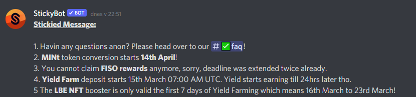 Zdarec, našel jsem něco zajímavého. Na dripdropz jde claimnout token MotleyMoon, když ho máte na walletu můžete se whitelistovat na jejich discordu na mint těch tokenů, cenu za jakou bude mint nevím, ale je dobré být na značkách :). https://dripdropz.io/explore-projects/MM
