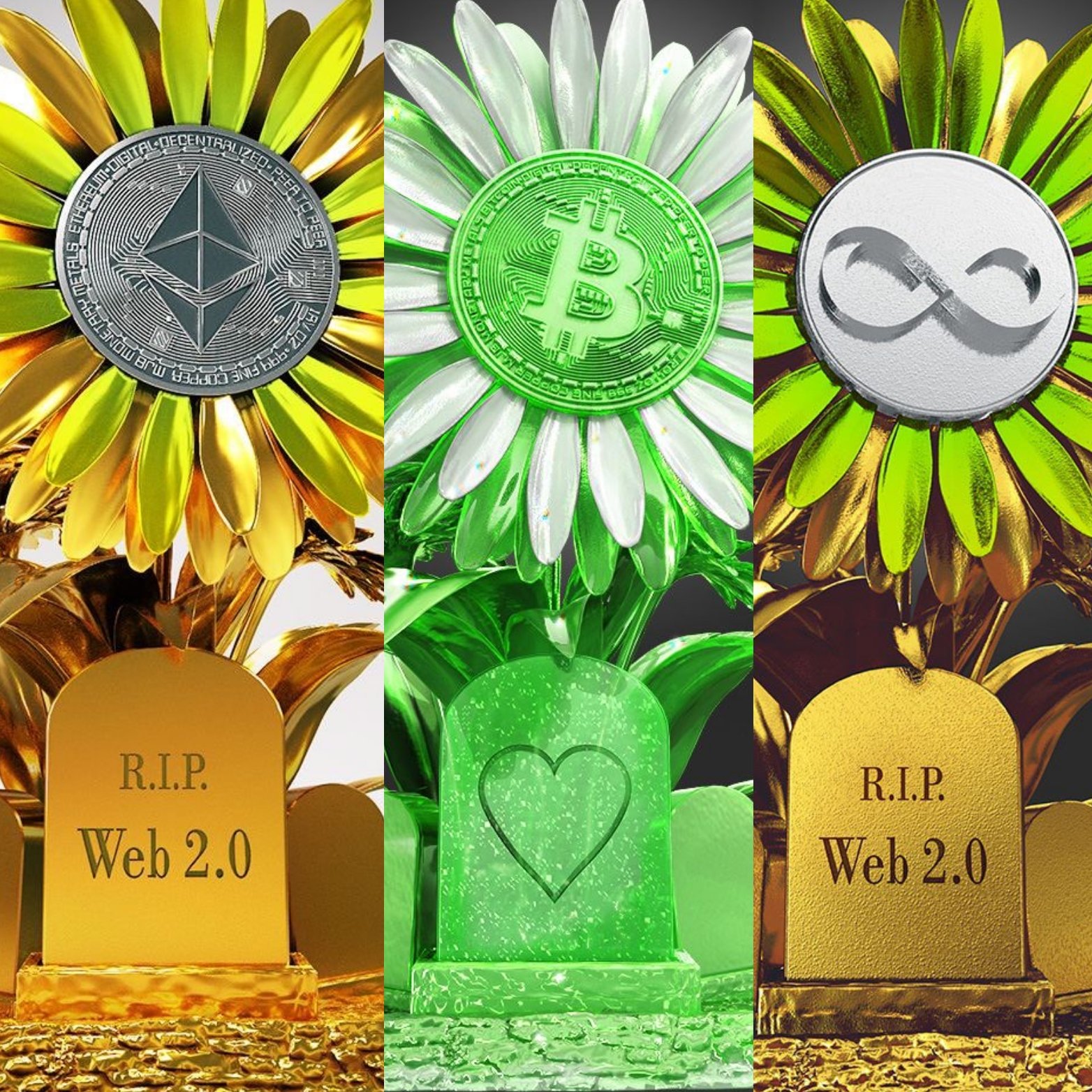 Iba 2009 BTC flowers, ďalšia séria bude ETH flowers - 5.000 kusov, 3.seria ICP flowers - 10.000 kusov. Držitelia 1.serie BTC budú mať free airdrop ostatných sérii. Je to animované - animácia sa mení podľa toho aká je cena BTC - keď rastie točí sa rýchlejšie, keď klesá ide pomalšie.