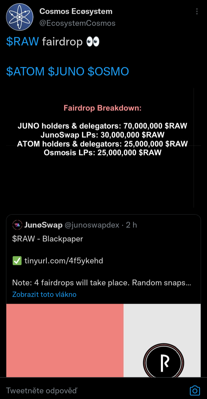 Stakuj atom, osmosis, juno, stars, lockni LP do poolů na junoswap a osmosis, já třeba mám většinu atom, osmo a zbytek se snažím mít aspoň něco ať mma aspoň min amount k tomu být eligible
