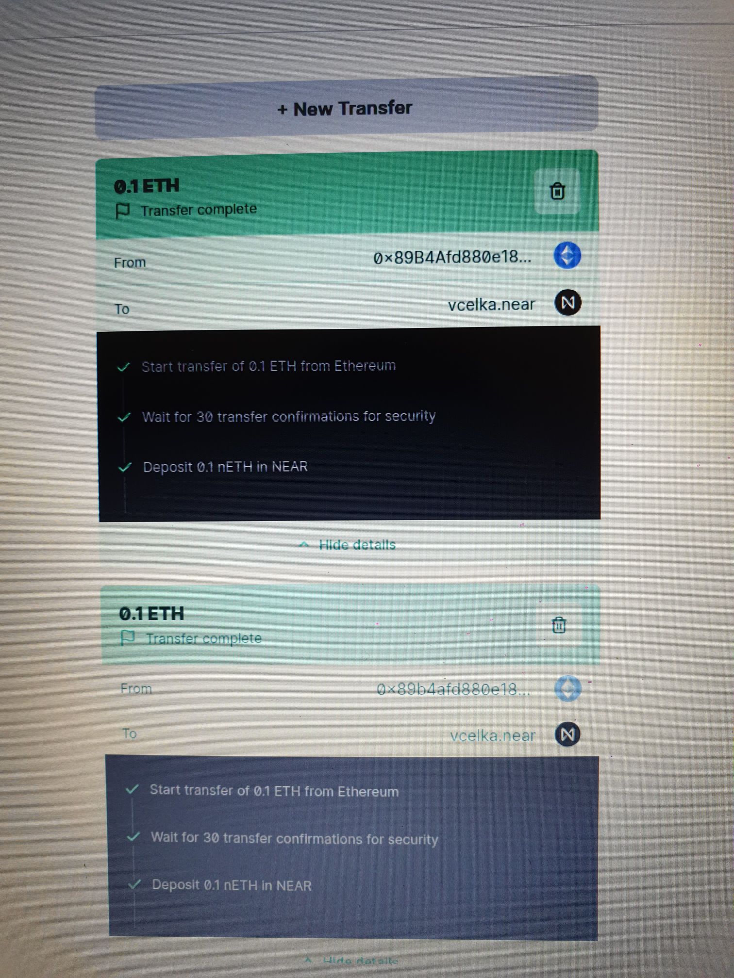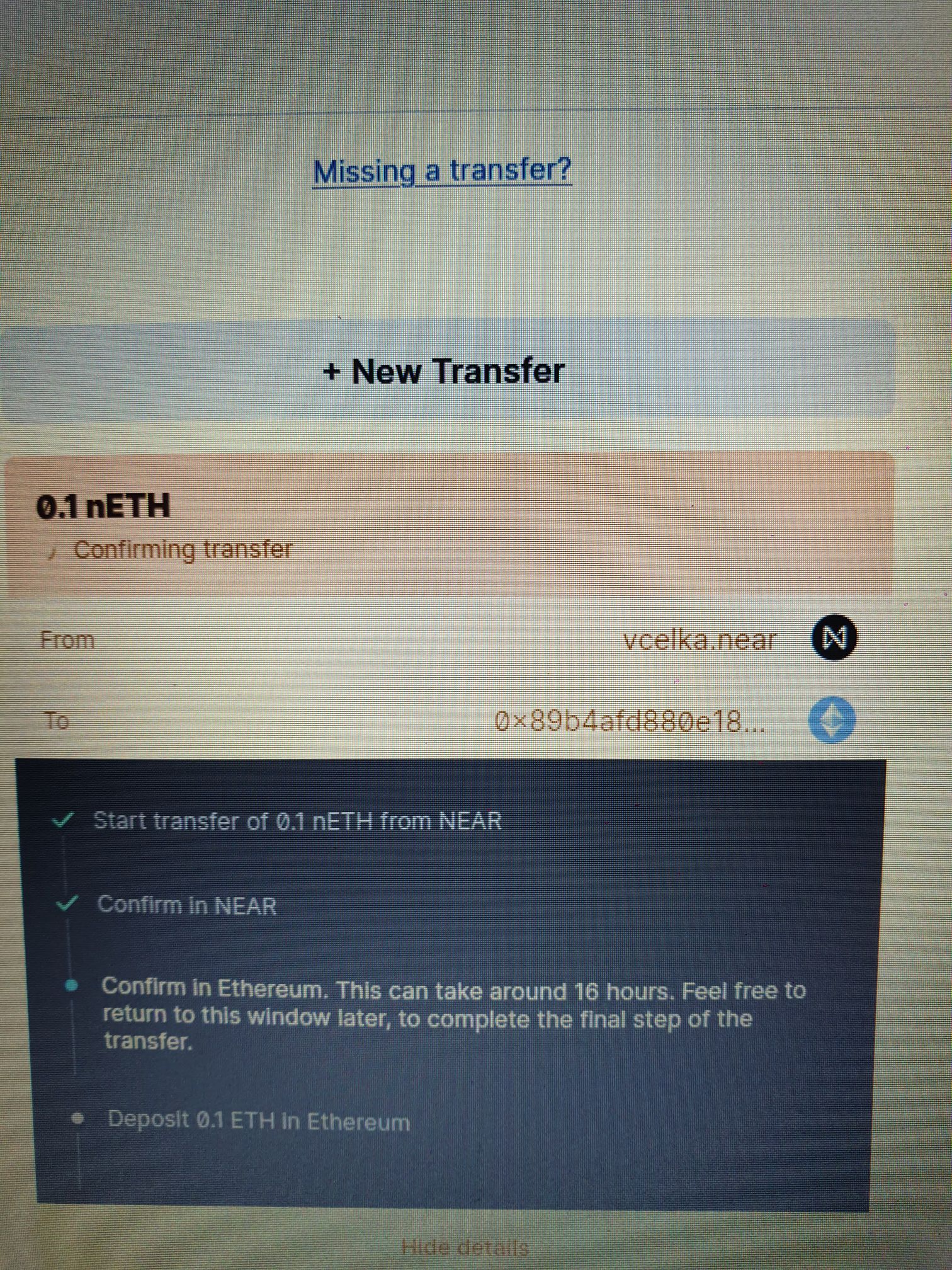Ty jo, tak ja nevim... na bridge vse prošlo, eth z trezoru odešlo ale nevidím ho ani na ref ani na near walletce