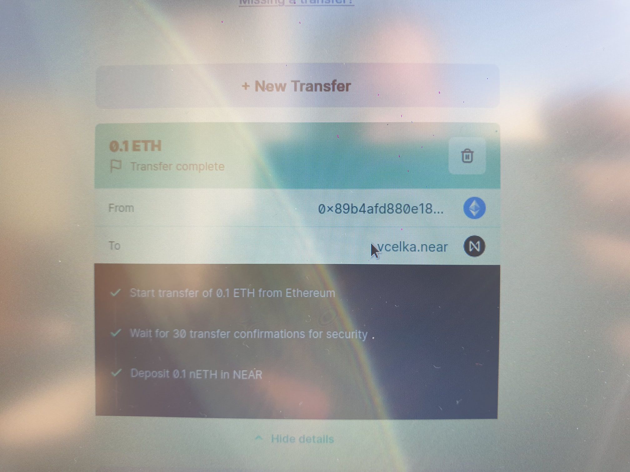 přes https://ethereum.bridgetonear.org/ sem si převedl ETH ale ted ho nikde nevidím. ani na skyward, ani na near wallet. nevíte kde mám problém?