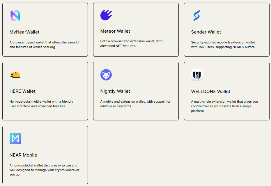 Většina asi použivá https://www.mynearwallet.com/