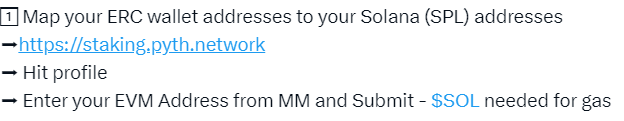 protože PYTH je na solaně a ten airdrop pak budeš claimovat na EVM, tak aby věděli, jaké EVM mám nárok za PYTH staking (když je to reálně úplně jiný formát adresy, spolu nesouvisející)
