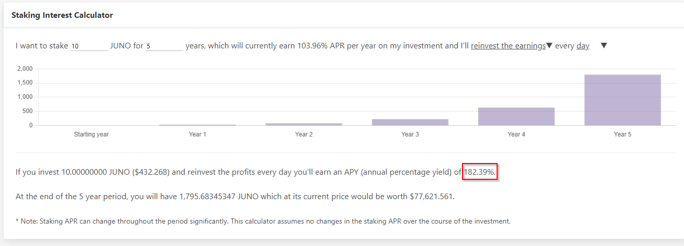 jen tu pocitame, ze kdyz na to nebudes rok hrabat, mas vynos 104%, kdyz to kazdej den claimnes a znova zastakujes, mas rocni vynos 180